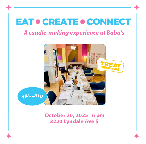 Onyx Candles invites you to an evening at Baba's where creativity, food, and community come together in Uptown. In this hands-on workshop, you’ll dive into the art and science of candle making, pouring your own clean-burning soy candle while enjoying a full Palestinian-inspired dinner.
